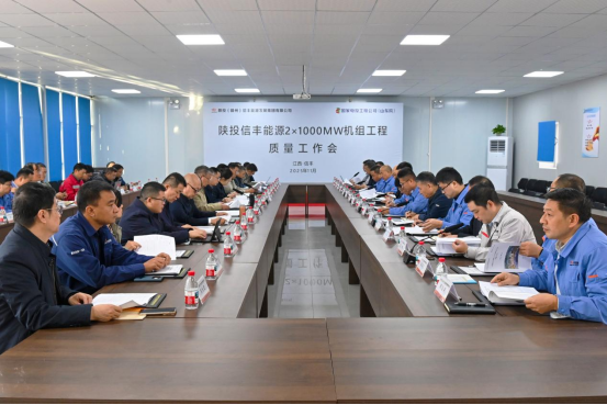 2025年11月30日,信丰能源召开陕投信丰能源2×1000MW机组工程质量工作会。信丰能源、国电投山东院、中电咨询湖北公司、东方电气及各参建单位、供应商代表共计80余人参加会议。