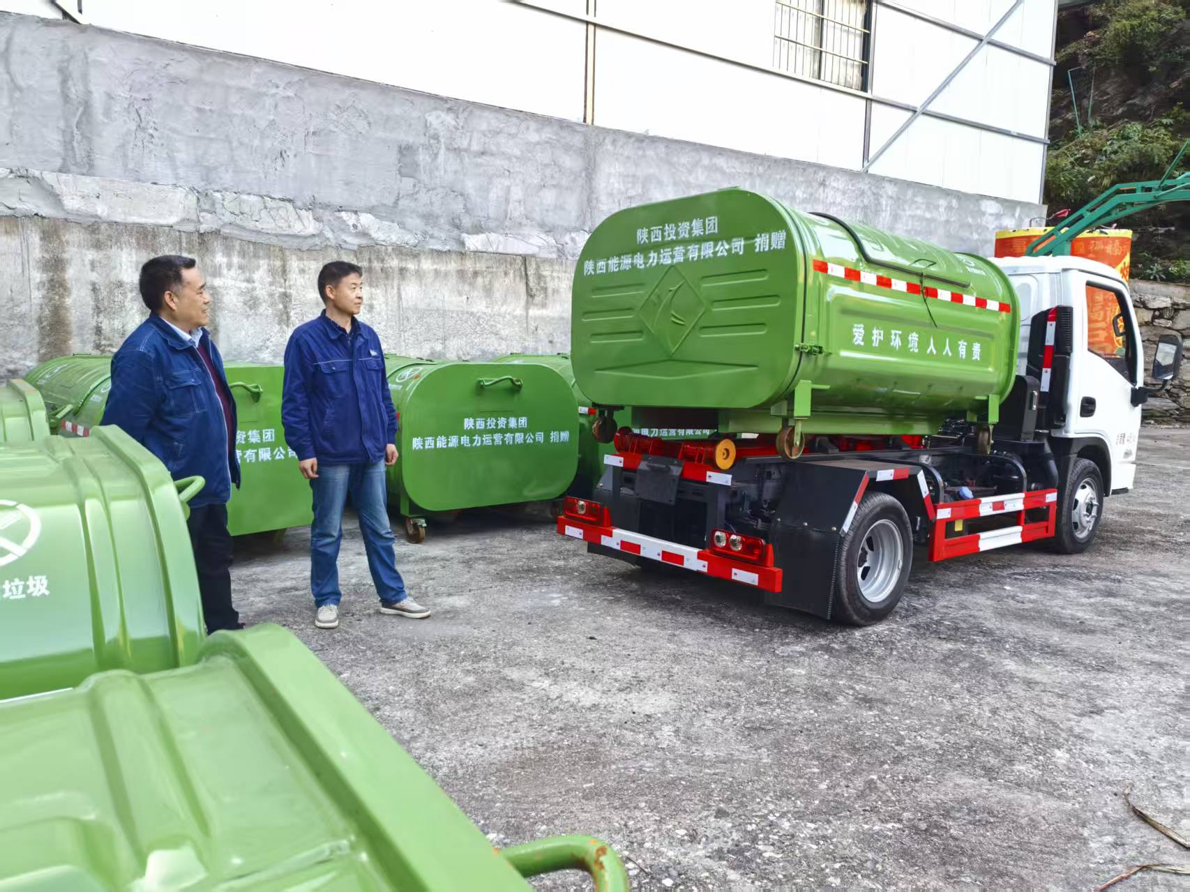 当天,崭新的清运车驶入社区开始它的首次作业。“这新车效率真高,一上午就把所有垃圾箱清干净了!”司机老李轻抚方向盘,脸上洋溢着喜悦与自豪。道路旁,10个印有“陕西投资集团陕西能源电力运营有限公司捐赠”字样的垃圾箱整齐排列,不仅解决了实际需求,也成为社区一道别样的文明风景线,引得过路的居民纷纷驻足称赞。
