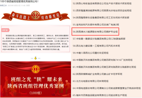 近日,从陕西省总工会传来喜讯,清水川能源公司设备部锅炉专业成功入选“100个陕西省班组管理优秀案例”。
