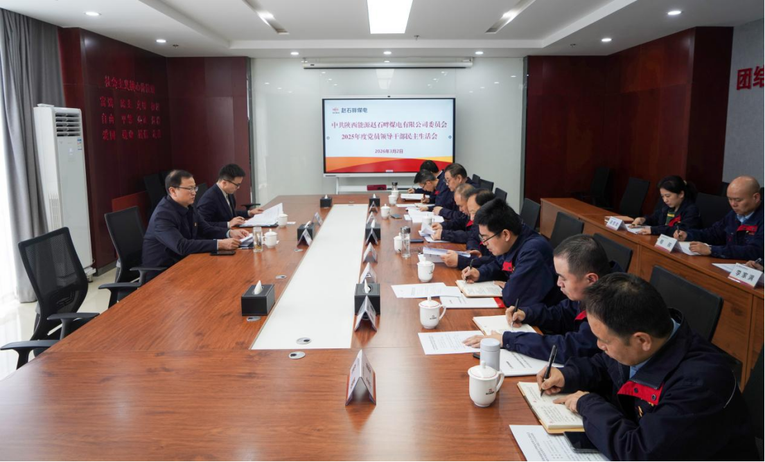近日,赵石畔煤电召开2025年度领导班子民主生活会。陕西能源副总经理王学民到会指导,电力管理部主任参加会议。