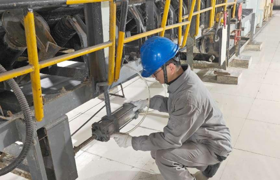 三期石膏皮带输送机跑偏问题长期困扰系统稳定运行,灰燃专业主动作为加装自动纠偏装置,从废旧资源中筛选出可用的气缸等部件,自制跑偏开关,通过检测修复与重新组装,成功打造出一套自动纠偏装置。安装调试后,皮带运行稳定、轨迹居中,实现了持续自动纠偏,提升了系统自动化水平与运行可靠性。