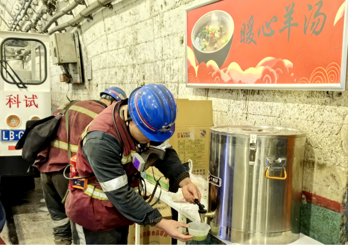 “干了一天活,出了一身汗,站在这里等罐笼,一碗暖心的羊汤能让身体更暖和一些。”喝着暖心暖胃的羊汤,高朋脸上洋溢着幸福的笑容。他说,一碗羊汤不仅驱散了冬日的严寒,更让职工感受到了来自大家庭的温暖和对自己辛勤付出的认可。