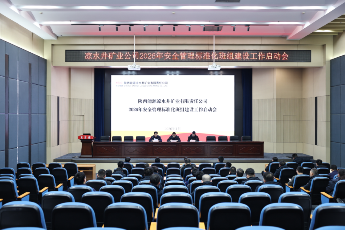 为进一步深化标准化班组建设,夯实安全发展根基,1月30日,凉水井矿业在综合楼三楼阶梯教室召开2026年安全管理标准化班组建设启动会。公司副总经理、各部门(区队)负责人、班组建设专干及优秀班组长代表等共计50余人参会。