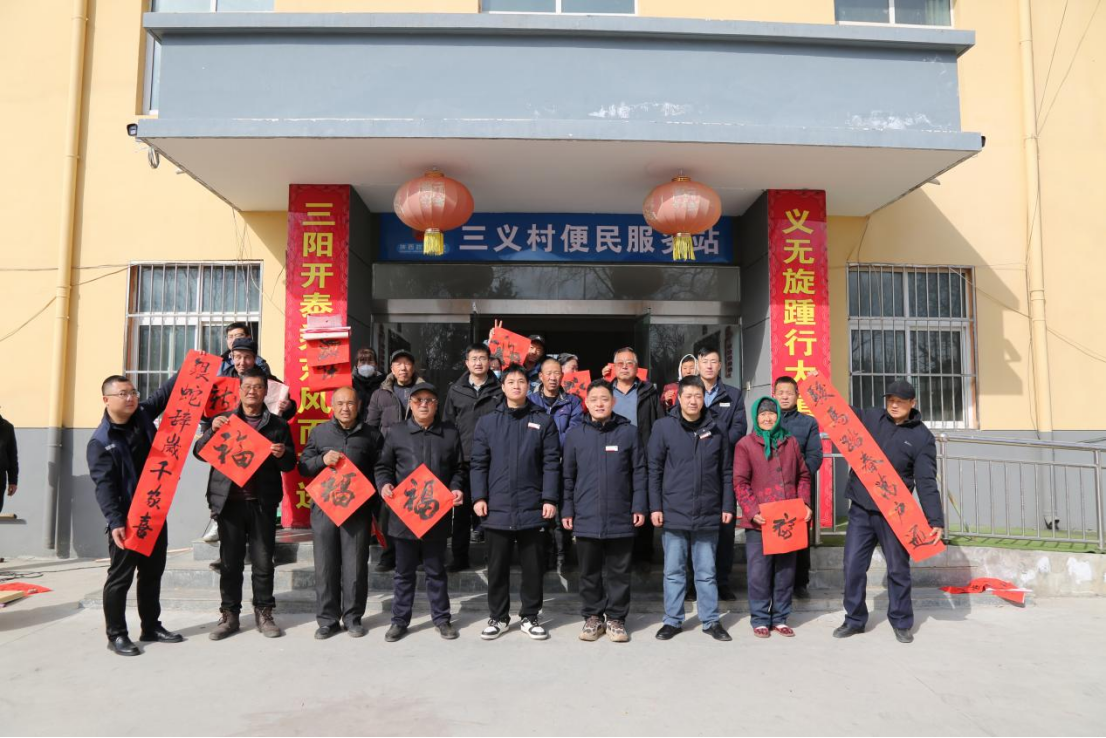 公司书法爱好者到达三义村村委会大院时,大院内早已是欢声笑语,红纸铺展。他们放下行装,立刻化身“书法工匠”,挥毫泼墨、笔走龙蛇,将辞旧迎新的美好愿景倾注于一笔一划之间。一副副寓意吉祥、承载祝福的春联和一张张大气磅礴的“福”字在他们手中诞生,或苍劲有力,或娟秀雅致,吸引了众多村民争相领取。
