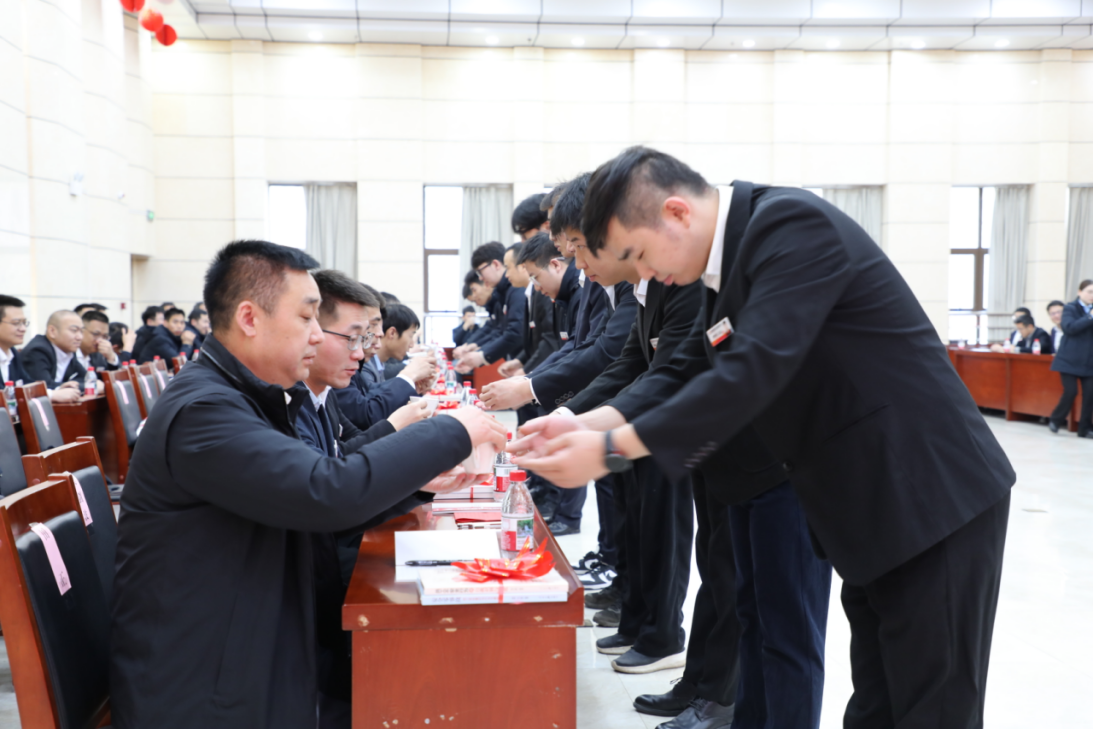 在全场目光聚焦下,4对师徒代表依次上台,郑重签订《师带徒协议》,一笔一画承载着师傅倾囊相授的责任,更凝聚着徒弟虚心求教的初心。拜师礼环节,徒弟代表恭敬地向师傅敬茶,一声“师傅,请喝茶”道出浓浓敬意;师傅向徒弟回赠专业书籍,寄予成长成才的殷切期望;徒弟向师傅行三鞠躬礼,以传统礼仪诠释尊师重道的真挚心意,简单的仪式里,满是深厚的师徒情谊和匠心传承的温度