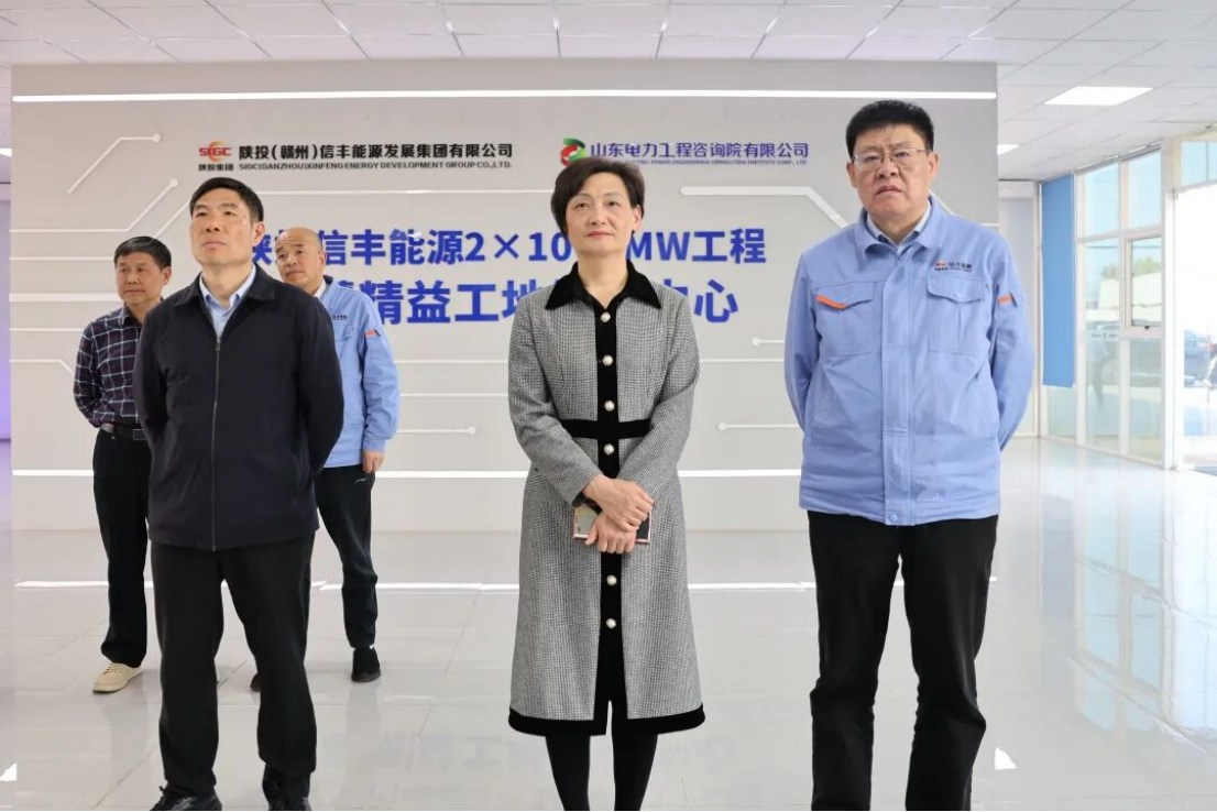 江树华一行详细了解信丰能源项目历程、基本情况与建设目标,听取智慧精益工地建设情况,对信丰能源在项目建设中展现出的高效组织能力和精细化管理水平给予充分肯定。她指出,信丰能源在项目管控中坚持高标准、严要求,尤其是在智慧工地建设和安全环保管理方面的创新举措,充分体现了现代化能源企业的责任担当和发展理念,为全县重点项目建设树立了标杆。