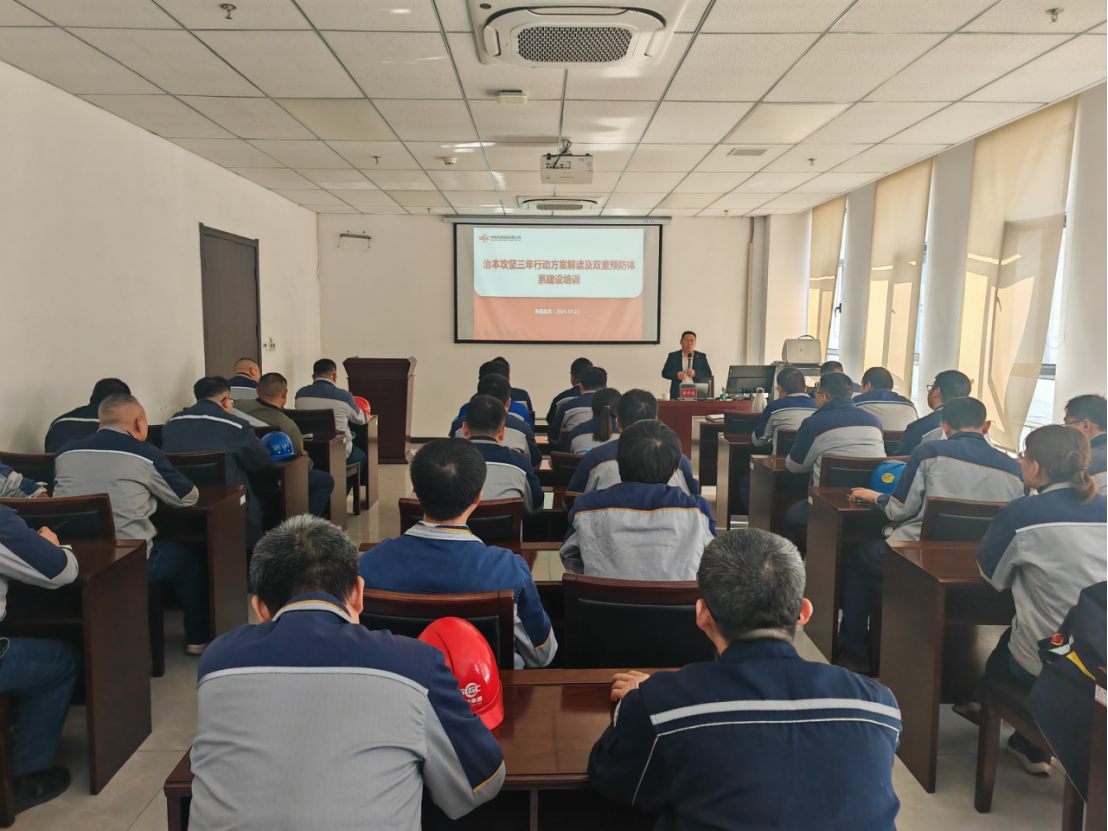 为深入推进安全生产治本攻坚三年行动走深走实,全面夯实双重预防机制建设基础,切实提升员工隐患辨识、排查治理及重大危险源管控能力,3月23日,陕能新疆组织开展治本攻坚三年行动方案解读和双重预防专题培训,公司各部室及外委单位相关管理人员、一线骨干员工参加,培训特邀行业资深安全管理专家现场授课指导。